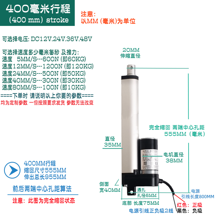 Iron beetle h series-c1-400mm stroke electric push rod